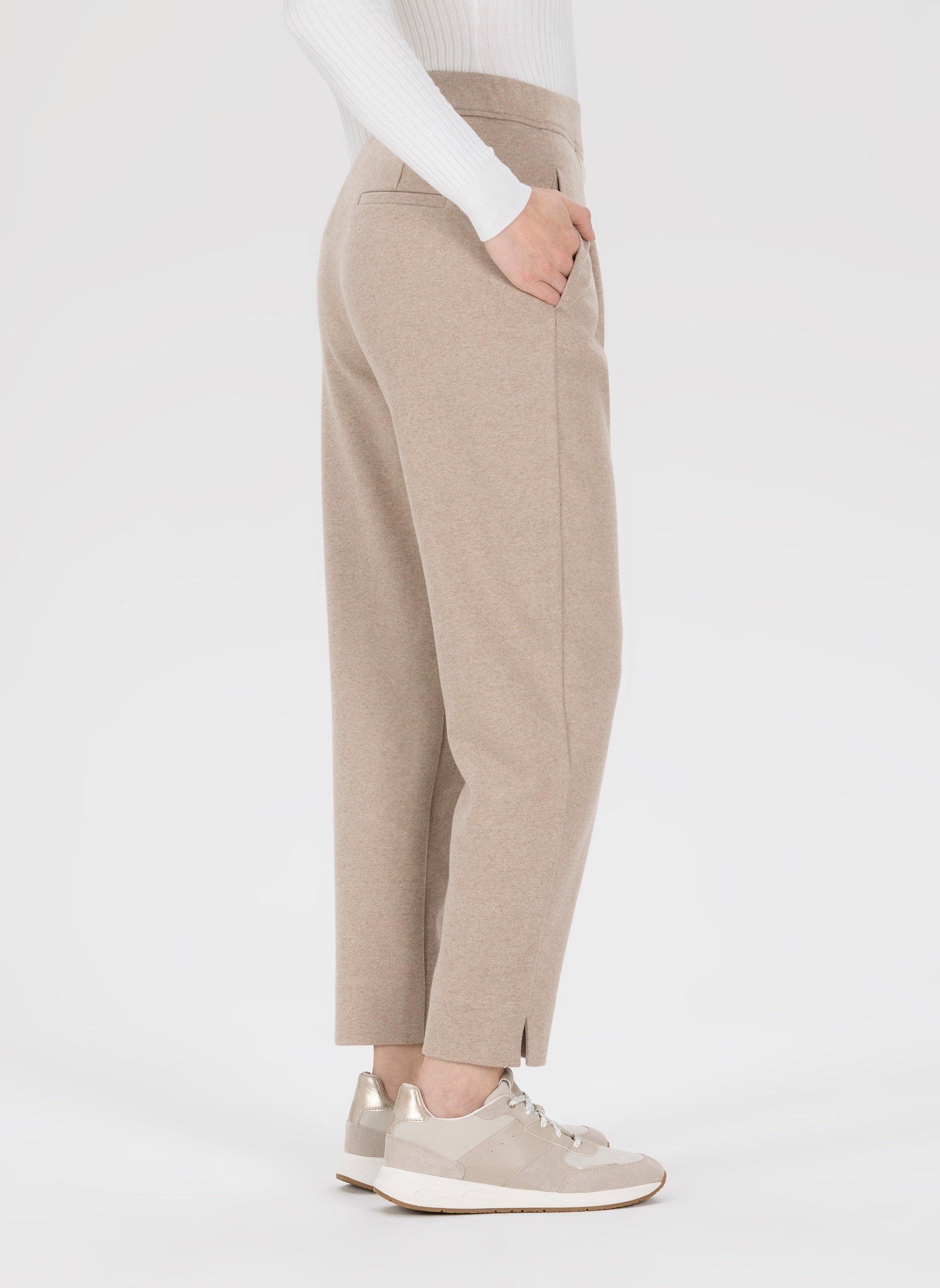 O-shaped trousers are versatile and flattering , offering a balanced silhouette with maximum comfort. The more voluminous cut at the hips and thighs creates harmonious proportions and plenty of freedom of movement without overwhelming the figure. Women with curvier hips or fuller thighs especially benefit from the relaxed fit, as it gently balances and accentuates the waist. The tapered leg adds structure and a modern look. Even slender women can embrace this voluminous style to add more shape and dynamism to their outfits . The result is trousers that look just as good in motion as they do standing still – fashionable, casual, and comfortable to wear.