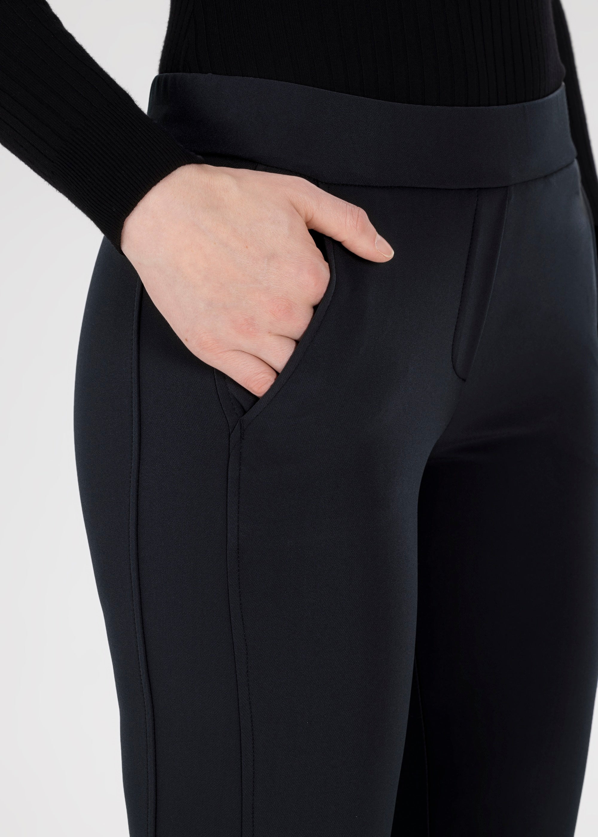 A pull-on pant in Black is a true all-rounder and should not be missing from any wardrobe. Black is not only timeless and elegant, but also extremely versatile. You can combine these pants with almost any color and pattern. Whether with a white shirt for a classic look or with a colorful blouse for a fashionable accent – the black pants always fit perfectly.