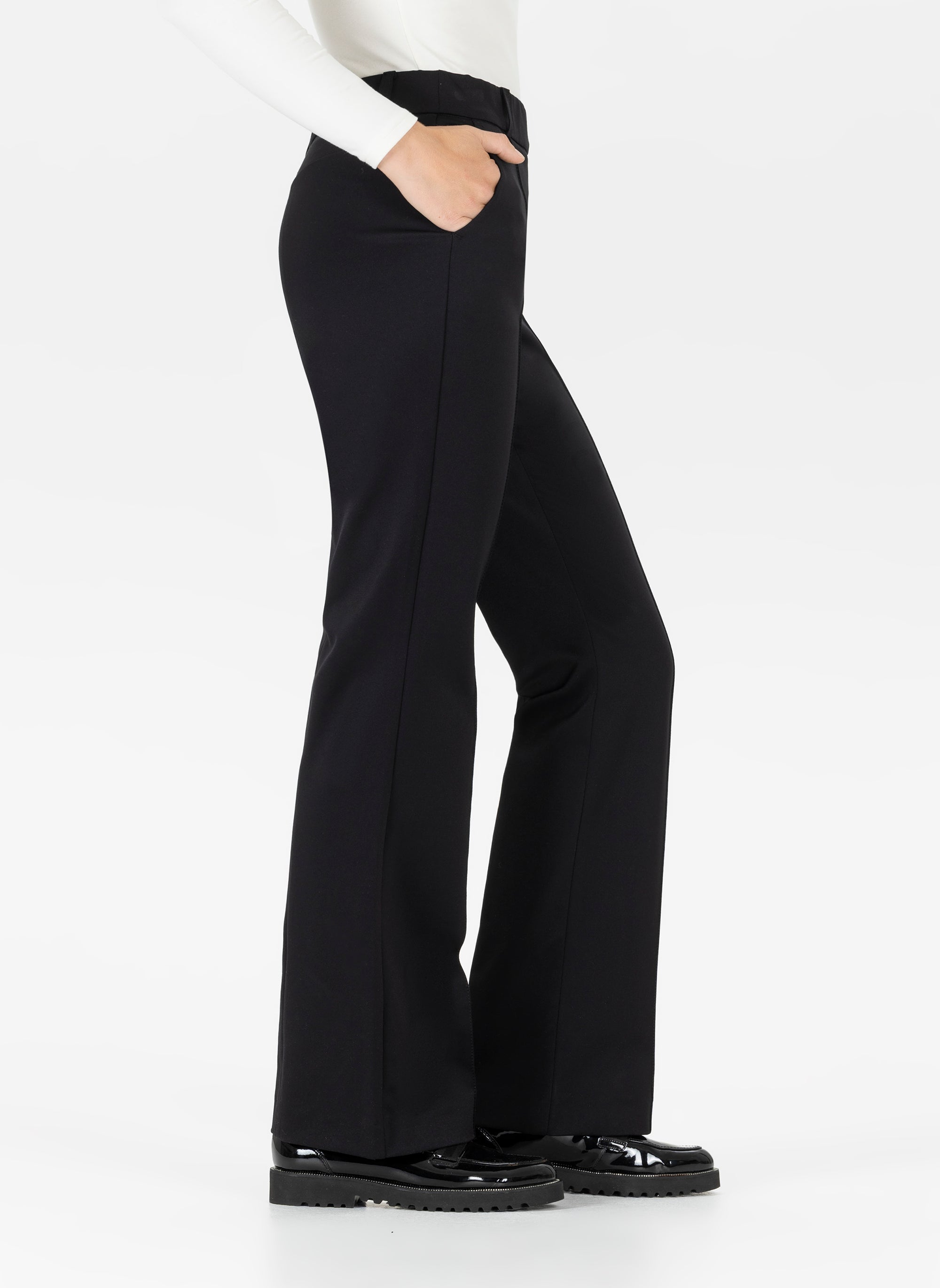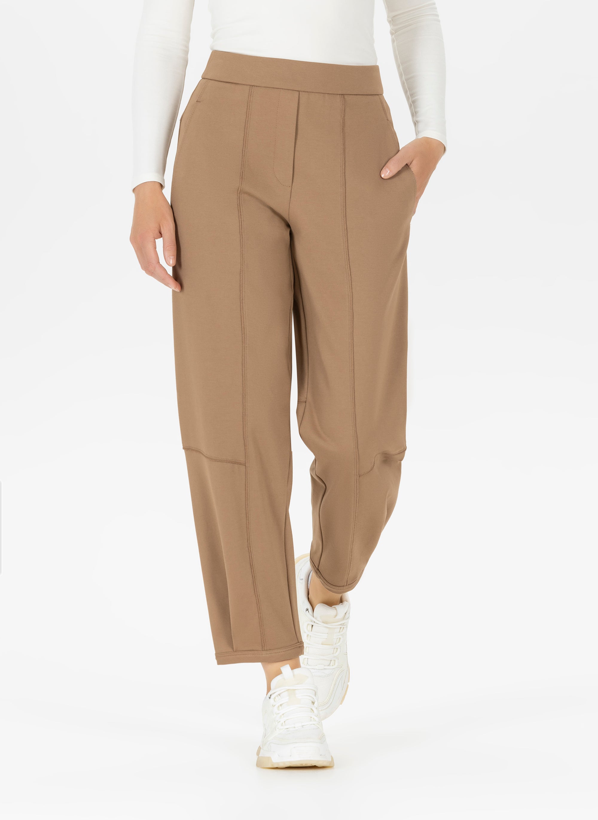 For the office, slim-cut models are suitable, which can be combined with a chic blouse and pumps. Many of our women's pull-on pants feature subtle details such as creases or piped pockets that add a particularly elegant touch.